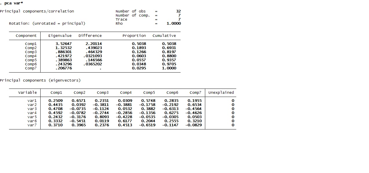 为什么同样的数据用同样的方法在stata和spss中进行主成分分析后的结果不一样?累计贡献率都一样,但成分矩阵完全不同啊。。。拜求高手解答!!万分感谢!!