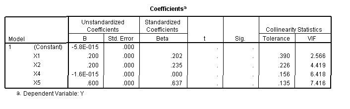 在SPSS里做了多元回归分析,5个自变量,1个因变量,出来的结果是这样子的: