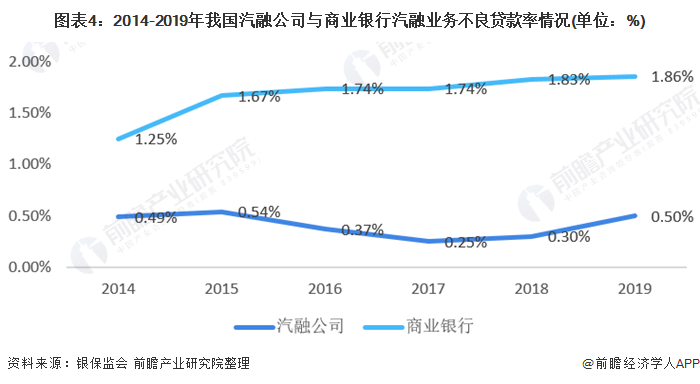 汽车贷款通常以汽车作为抵押品,购车人群信用资质较优,且每笔交易分散度高,因此汽车信贷资产质量相对较优。据中国银行业协会数据,2014年以来汽车金融公司不良率均在0.55%以下,明显低于商业银行不良率。