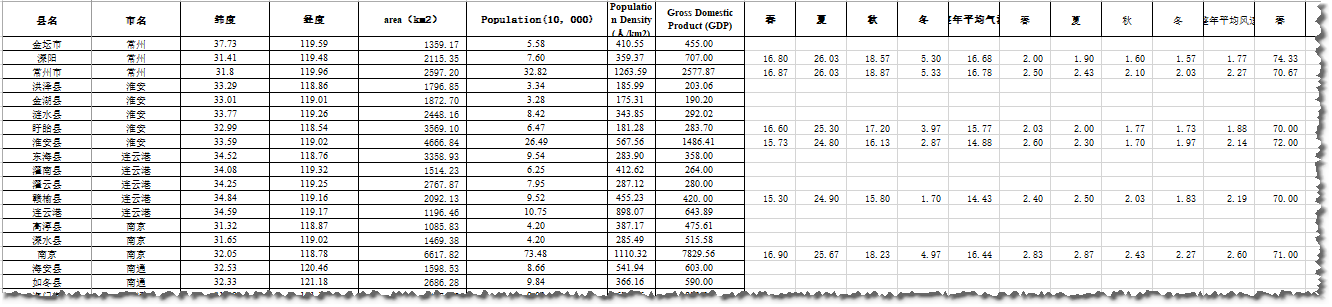 长三角县级以上城市气象数据+地理数据+人口数据+GDP:1960-2014.rar