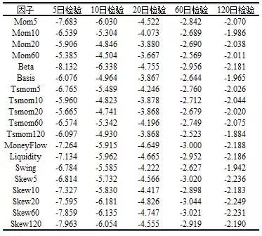 偏度因子能够衡量商品期货的强弱程度,因为大单拉动趋势,小单反向操作时,会产生较高的偏度,因此偏度能够较好的捕捉人们交易行为,此外,偏度因子还代表着商品期货的博彩性质,偏度大的商品期货吸引更多资金前来对赌。我们采用的是过去N日收益率偏度来衡量,其中表现较好的为10日、20日、60日偏度因子。
