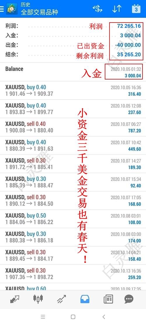 交易者不易,每一次的交易都需要面对诸多的风险和挑战。灵雁对于行情,有一套自己的方法去观察,同时每一位投资者也会有自己的交易方法和理念。不管是什么交易方法,看一下阶段性交易是不是有收益。如果每个阶段收益都是负数,真的要换一种思路,有没有遵循交易的六大交易心态。