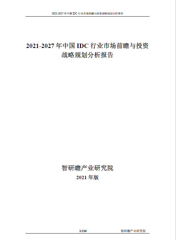 2021-2027年中国IDC行业市场前瞻与投资战略规划分析报告.pdf