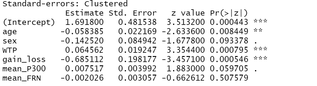 总的公式时这个:correct ~ age+sex+WTP+gain_loss+mean_P300+mean_FRN