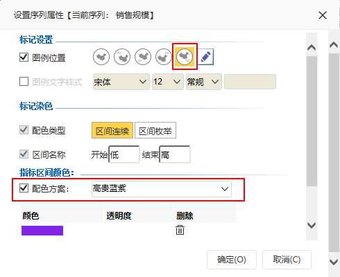 将“总部省份”字段作为“区域标识”,“销售量”字段作为“指标”。