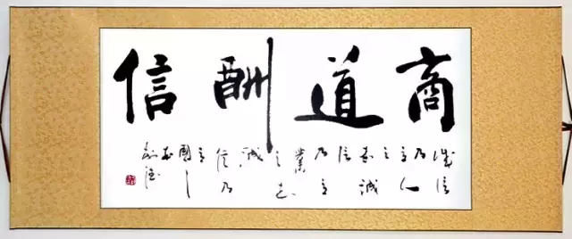 “商道酬信”出自《论语》“民无信不立”,反映诚信经商,无往不利。