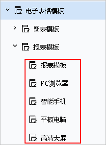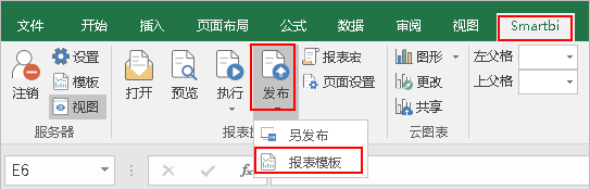 点击工具栏的 发布 ,弹出下级菜单,选择 报表模板 :