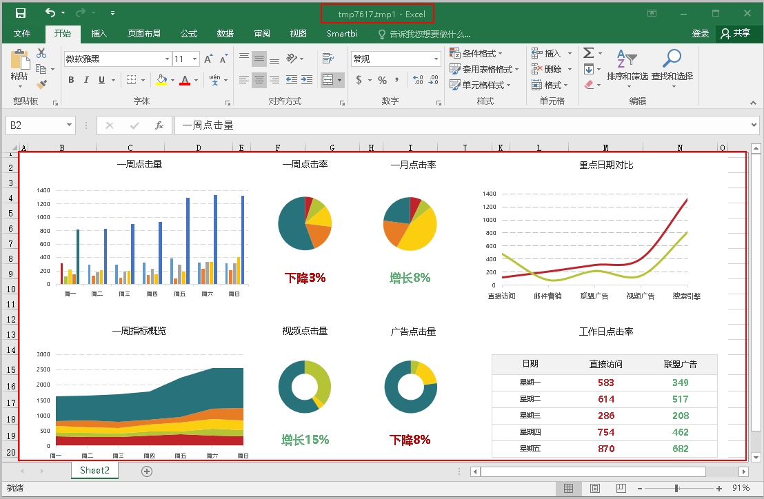 随着数据量的增多,数据报表分析的内容也是越来越多,而且好的数据报表除了可视化呈现之外还需要加入一些标题、多行文本、图片链接、视频等元素,从而制作出更具视觉效果的仪表盘效果,秒变数据达人。Smartbi电子表格就有这些效果,想要制作一份报表,可以直接使用Smartbi电子表格的数据报表模板。