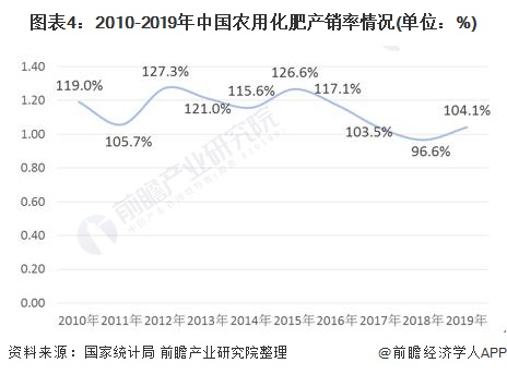 从我国农用化肥产销率来看,2010-2017年整体呈现产能过剩的情况,到2018年稍有缓和,2019年行业产销率又回升至104.1%。主要是在政策层面,基于环保要求对化肥使用受限,而行业企业生产产能不断提升,导致国内化肥呈现产大于销的局面。