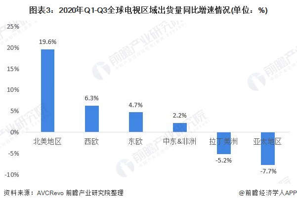但是,由于2020年亚太地区最大市场印度深陷疫情新“震中”,因此2020年前三季度亚太地区电视出货量下滑7.7%。而北美地因政府补贴、居家办公、娱乐、在线教育等因素的影响,北美地区2020年前三季度电视出货量出现大幅增长的态势,同比增速接近20%。