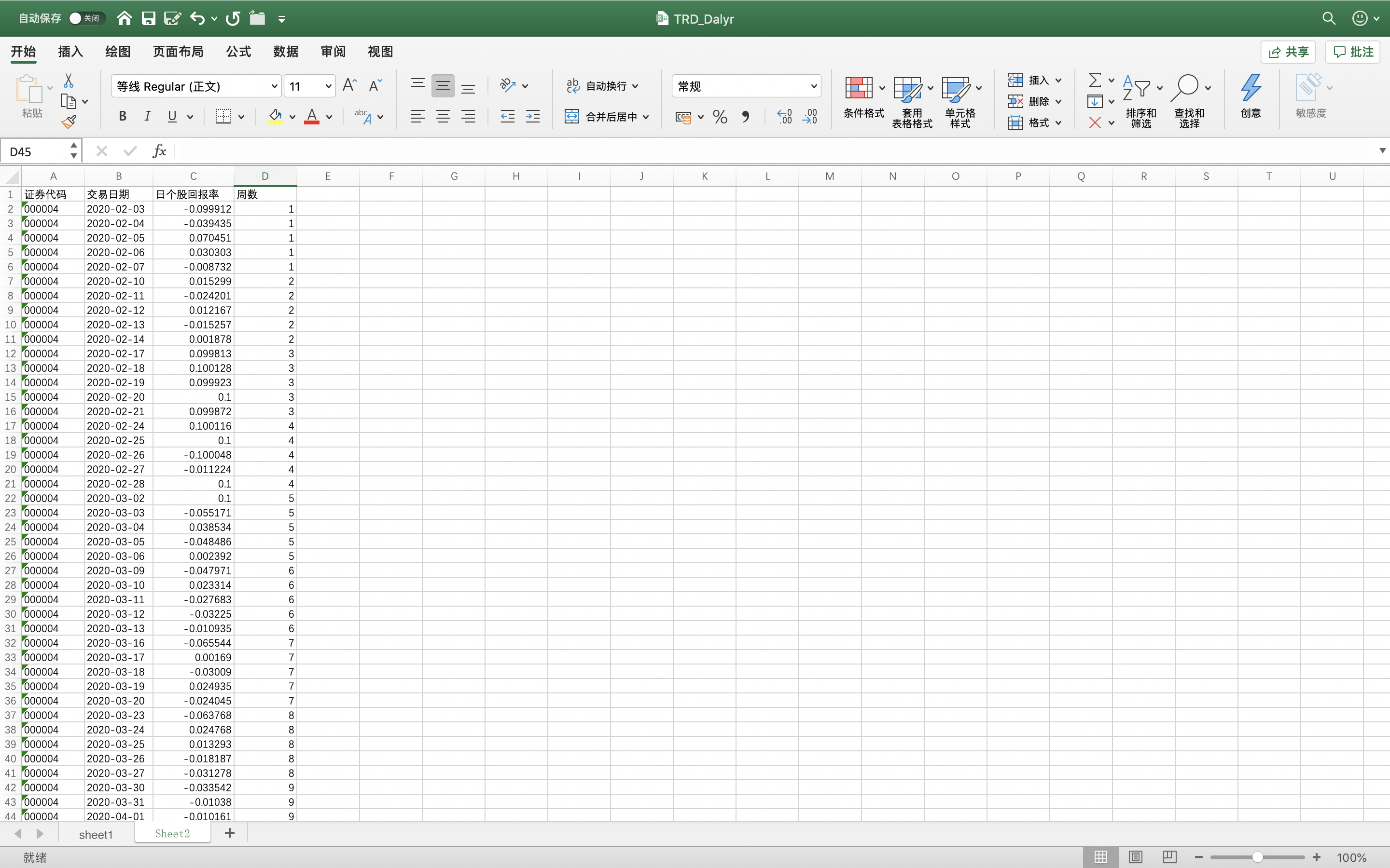 呜呜呜,感谢论坛每一个解答和提问的前辈们,让小白在这里有学习的机会。想请教大家一个问题,我这里有1000多家公司在9周内的,每天的股票回报率。一共九周,利用stata,我要计算每家公司每周的回报率标准差,而且要滚动三周计算,谢谢大家啦,诚恳求解答,好人一生平安呜呜。数据结构大概如图,篇幅有限,只展示了一家公司,一共有1000多家。