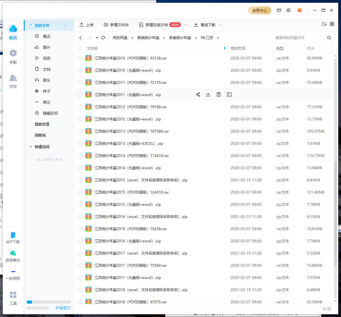 具体包含各个年度的数据文件包格式清单大致如下图所示: