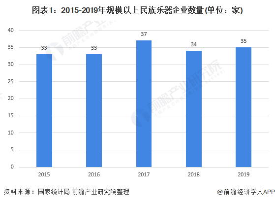 民族乐器产业是我国传统制造业的一部分,是我国产业升级,结构调整范畴的重点行业,但由于民族乐器又属于我国民族音乐的重要组成部分,是中华民族传统文化的一部分。根据国家统计局公布的2019年乐器行业规模以上生产企业主要经济指标完成情况,乐器行业规模以上企业共计244家,其中民族乐器行业规模以上企业35家,较2018年增加1家。