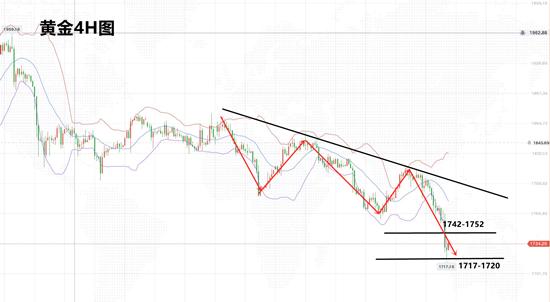 黄金周五持续单边下行,盘面呈现阶梯式震荡下行格局,早盘下探1765企稳小幅反弹,最高反弹1775承压下跌,晚间延续下探最低回落触及1717美金,录的新低,随后小幅震荡反弹,从盘面上看,周五亚盘下跌后,欧盘虽有反弹,但未过亚盘高点,美盘进一步延续这种弱势下跌,综合来看,下周操作上价格控盘白灵雁建议上方阻力关注1742-1752一线,下方支撑关注1717-1720一线。