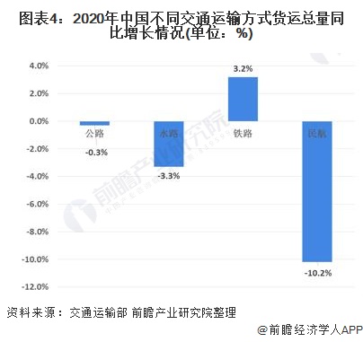 2020年全国货运总量完成463.45亿吨,同比下降0.5%,已基本回补疫情造成的缺口。分运输方式看,民航货运量降幅最大达到10.2%,公路、水路货运量分别下降0.3%和3.3%,而铁路货运量同比增长3.2%。