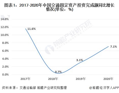 根据交通运输部初步统计,2020年中国交通固定资产投资完成34752亿元,同比增长7.1%。分运输方式看,公路水路固定资产投资完成额为25883亿元,同比增长10.4%,而铁路和航空运输固定资产投资均为负增长。