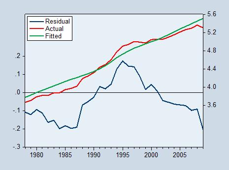现在我公布结果,确实是用EViews做得 呵呵