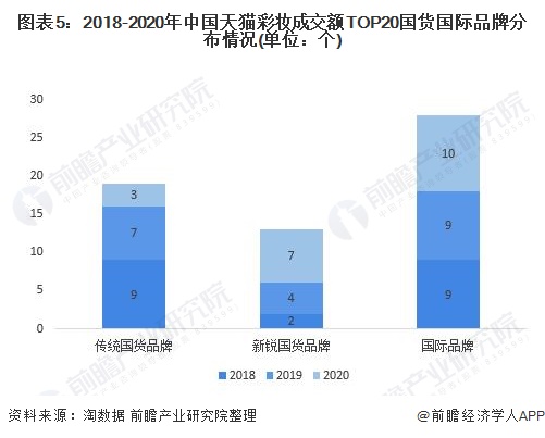 另一方面,我国本土新锐品牌大多通过电商等线上渠道发力打入市场,近三年进入到天猫彩妆成交额TOP20榜单的品牌有一半是国货品牌,其中新锐国货品牌占据了大多数席位,2020年共有7个新锐国货品牌入榜。