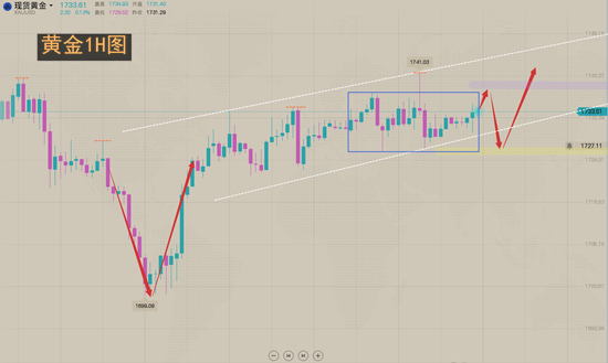 黄金今日重点关注的就是1727位置的支撑,此位置是回踩低点连线的支撑维持,此位置上黄金继续低多看涨,甚至创出新高,但是一旦破位,黄金将转空,关键性的压力支撑,承载行情转折的关键,也是我们多空的依据。
