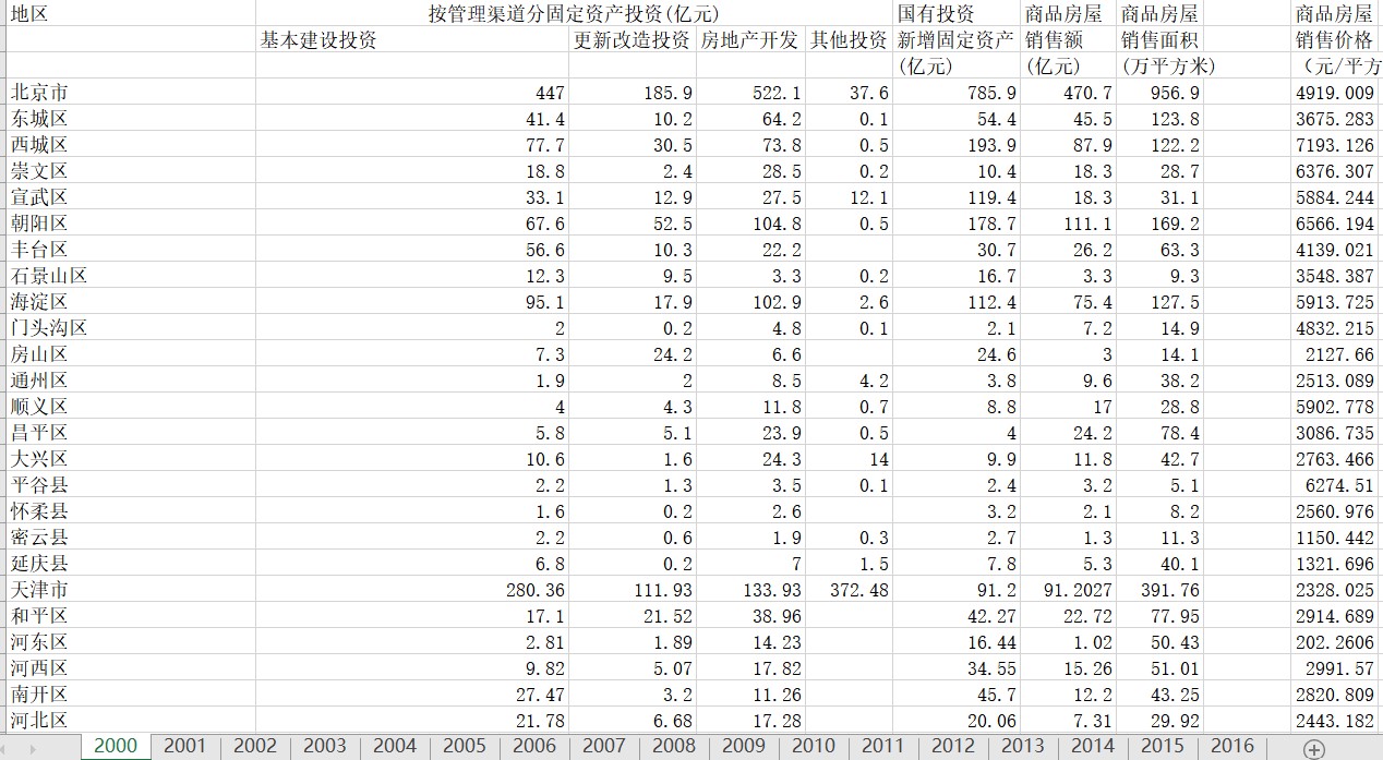 00-16年地级以上城市商品房屋销售情况及房价数据