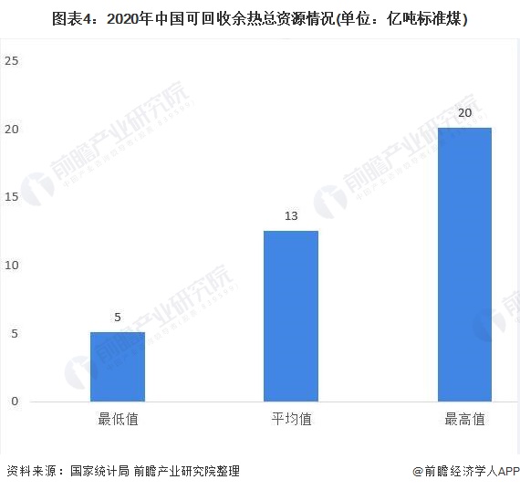 根据全国能源消费总量与可回收余热资源占比进行测算,2020年我国可回收余热总资源平均值约13亿吨标准煤,计划2020年余热资源利用率达到30%,当前我国余热资源利用率不断提高,仍有较大的提升空间。