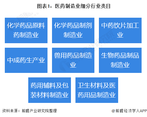 医药制造是指原料经物理变化或化学变化后成为新的医药类产品的过程,主要从事该类活动的行业即医药制造业。根据《2017年国民经济行业分类》,医药制造业主要可以分为化学药品原料药制造业(271)、化学药品制剂制造业(272)、中药饮片加工业(273)、中成药生产业(274)、兽用药品制造业(275)、生物药品制品制造业(276)、卫生材料及医药用品制造业(277)和药用辅料及包装材料制造业(278)。
