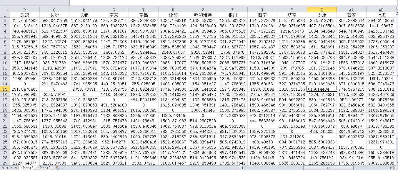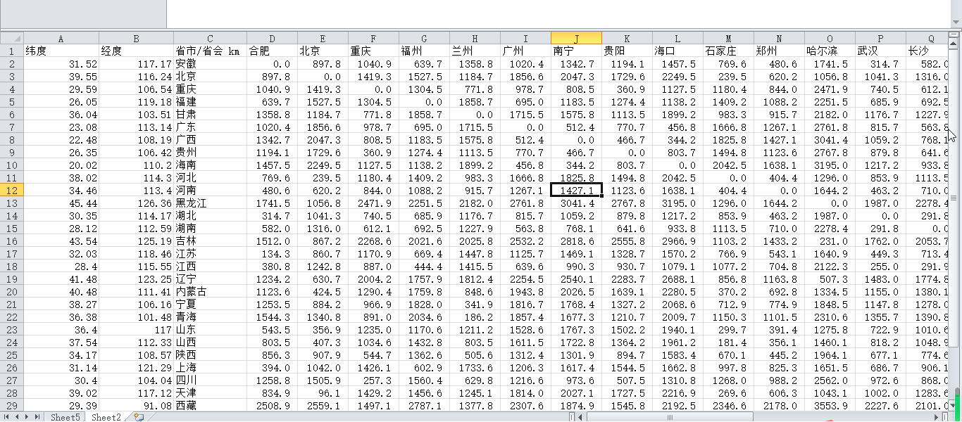 中国各省会距离原始数据.xls