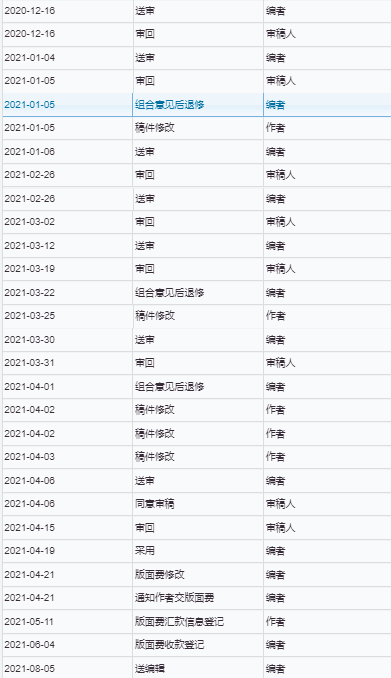 Johnkou 发表于 2021-7-10 15:09 您好,请问可以发一下处理历史记录的截图吗?在一审的时候有没有“暂时保留审稿意见”?一篇论文反反复复 ...