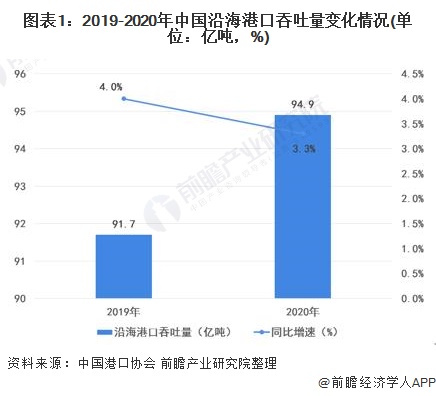 根据中国港口协会数据,2020年全国沿海港口吞吐量预计将达到94.9亿吨,同比增长3.3%,其中外贸增长4.0%、内贸增长2.7%。其中,宁波舟山港以11.72亿吨的吞吐规模位居全国第一,同比增长4.7%。