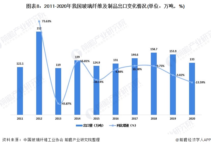 新冠肺炎疫情在全球持续蔓延,同时欧美对华贸易政策形势仍未出现明显好转,美国对中国出口产品采取的贸易战、欧盟对中国实施的贸易救济政策仍在持续,加之内需市场的异军突起,是导致2020年我国玻纤及制品出口量出现明显下滑的根本。