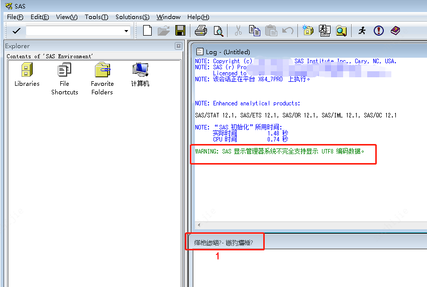补充下问题,有提示为“SAS显示器系统不完全支持显示utf-8编码数据”。