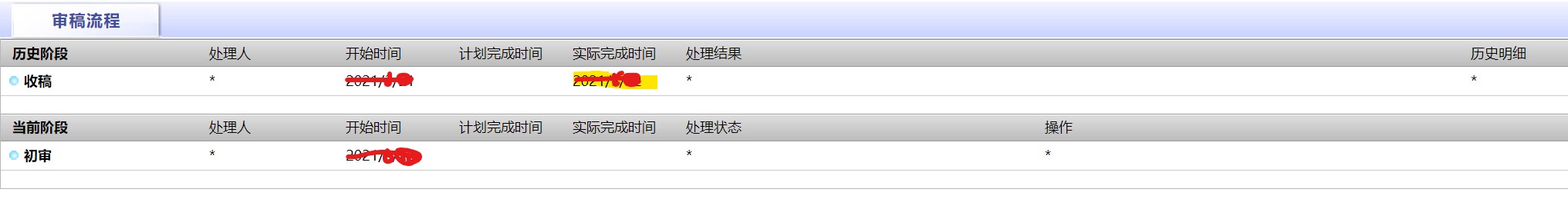 hongshilin 发表于 2021-3-26 15:47 如题,第一次投,自己也觉得忐忑,记得刚开始的时候,初审没有开始时间,都是星号,现在有了,请问这是什么 ...