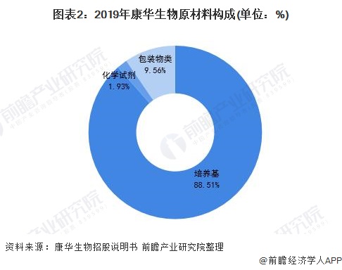 疫苗行业上游为原材料,包括培养基、化学试剂、药品包装等。其中,培养基占据较大的市场份额。以康华生物为例,2019年公司的原材料采购中,培养基采购金额为2440.31万元,占原材料采购金额的比重高达88.51%。
