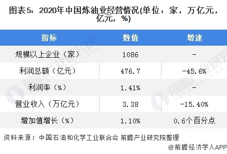 炼油业效益在2020年第三季度实现扭亏为盈后,盈利持续扩大,主要经济指标明显改善。截至12月末,炼油业规模以上企业1086家,累计实现利润总额476.7亿元,较前11月增加177.2亿元,比上年下降45.6%,利润回升进一步加快。全年炼油业营业收入利润率为1.41%,较1~11月上升0.43个百分点。