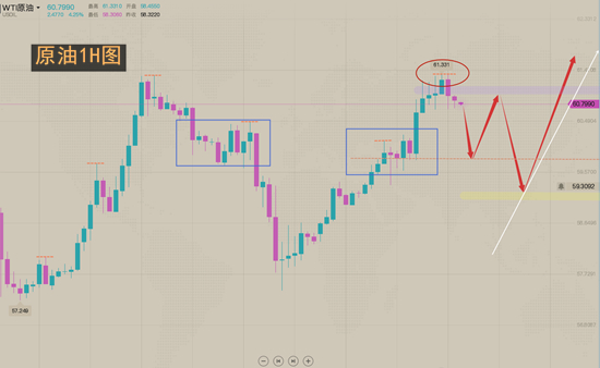 原油4小时随着反弹高点61.30下移,暂时处于临界点62.0之下收盘转弱,小台阶通道未改变,而昨日下探后也未直接跌破57.30。由于上探和回落的基数大,使得短线拉锯的区间幅度也比较大,下周暂时还是看在区间62.0-57.30区间内拉锯,趋势而言,在探高中择机选择高空。综合来看,下周原油操作思路上夏黛清个人建议以回调做多为主,反弹高空为辅。