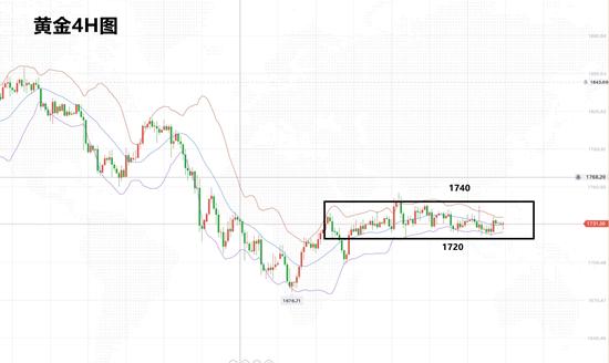 回到技术面方面,日K线连续多日震荡延续,K线阴阳交替。4小时K线在均线MA60和MA100区间内窄幅运行,也没有明显的方向性。小时线短线虽然看似多头偏强一点,但是结合近期的走势来看,保不齐一个回撤就把涨幅全部吞没了。所以,在明显突破前,黄金的操作我们还是不要急于提前押宝,先按照震荡的手法来操作。下方关注1724上支撑,上方关注1740下阻力,在此支撑阻力突破前我们先按震荡的思路操作。