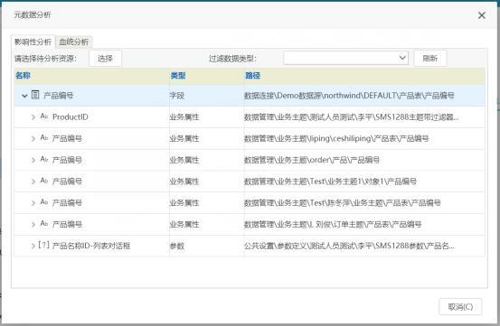 元数据管理,影响性分析:(对字段应用到哪些地方可以一目了然)