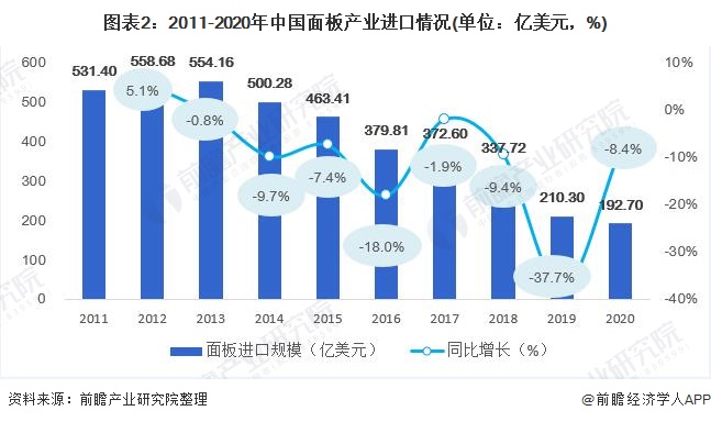 我国面板产业进口额逐年下降