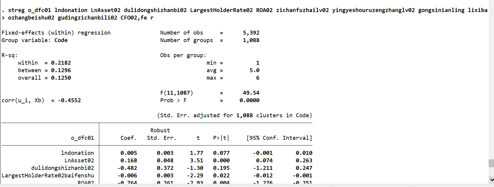 xtreg固定效应