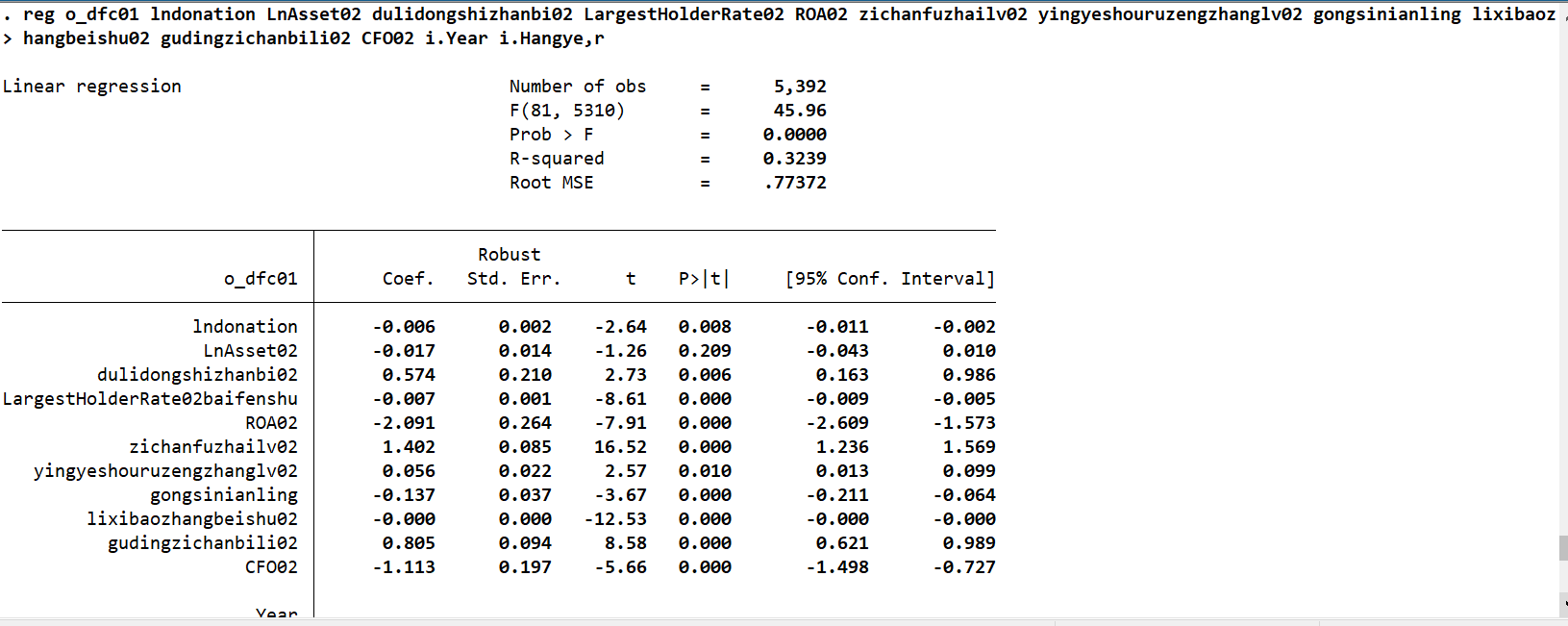 请问reg控制年份行业固定效应与xtreg固定面板回归结果自变量系数符号不一样,是为什么