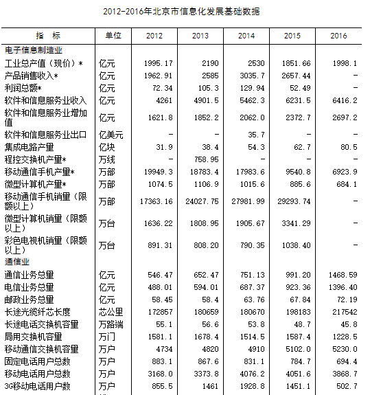 2012-2016年全国各省市信息化发展基础数据.rar