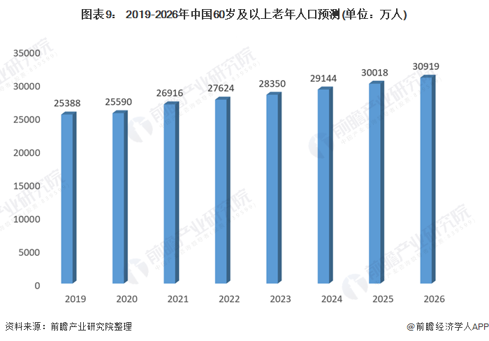 综合联合国、国家人口计生委、全国老龄委以及部分学者对我国未来老龄化发展趋势的预测结果,初步预计,2020年,我国60岁及以上人口规模在2.55亿人左右;2026年,我国60岁及以上人口规模在3亿人左右。