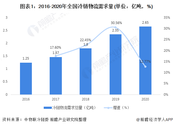 全国冷链物流需求量逐年上升