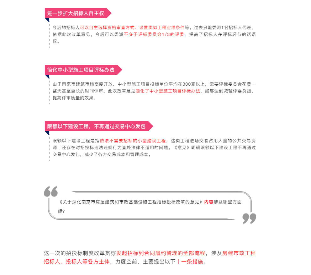 招标代理机构资质取消后,为强化对招标代理行为的事中事后监管,去年市建委出台了《南京市建设工程招标代理机构信用管理暂行办法》文件。该条着重强调对文件的落实,通过开展对招标代理机构的动态评价和结果公示,督促代理机构规范从业行为。