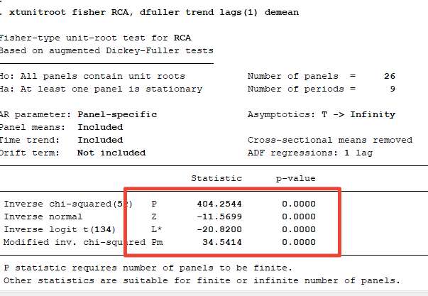stata面板数据adf检验结果输出