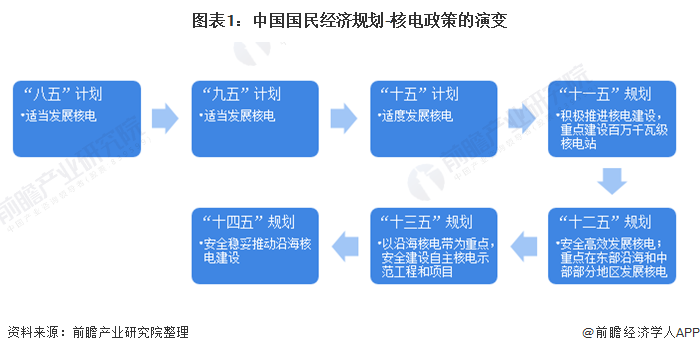 核电是我国能源供应体系的重要分支,也是新能源的重要组成部分。根据我国国民经济“八五”计划至“十四五”规划,国家对核电行业的支持政策经历了从“适当发展”到“积极推进发展”再到“安全稳妥发展”的变化。