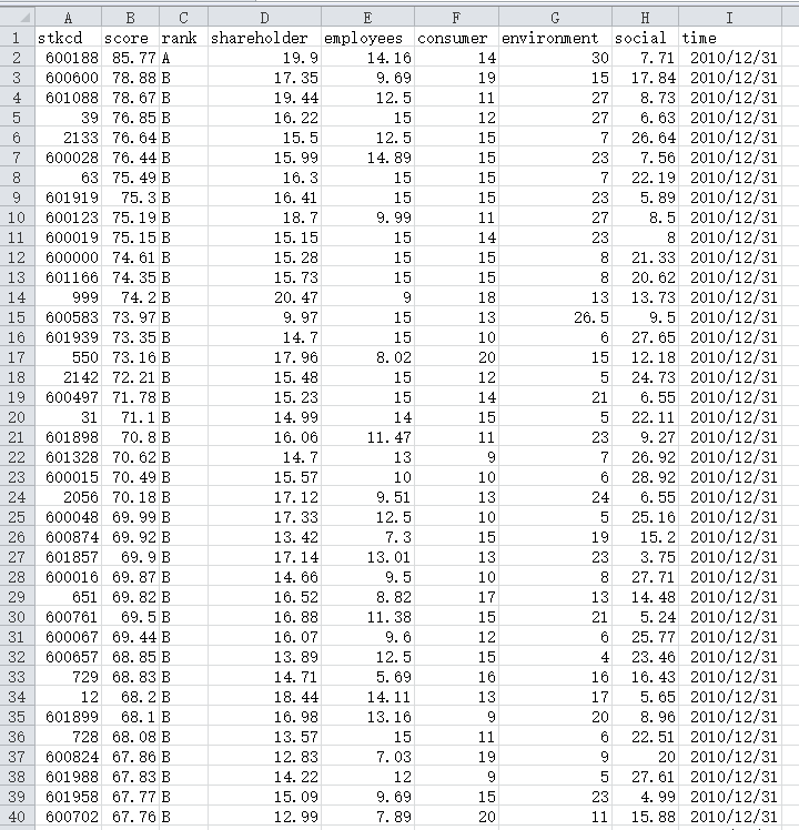 和讯网的上市公司社会责任报告专业评测体系涵盖范围为2010年至2020年通过python编程建立的爬虫代码