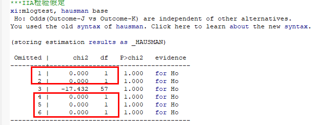 mlogit模型的IIA检验结果为什么自由度很多显示为1,chi2很多显示为0。