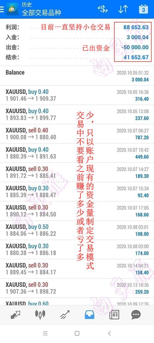 3.习惯慢慢赚钱,而不是想着一夜暴富,这个市场做了十年还活下来的人一定是那种学会知足并且稳稳赚慢钱的人,天天想着赚快钱,要不了多久就被消灭了;