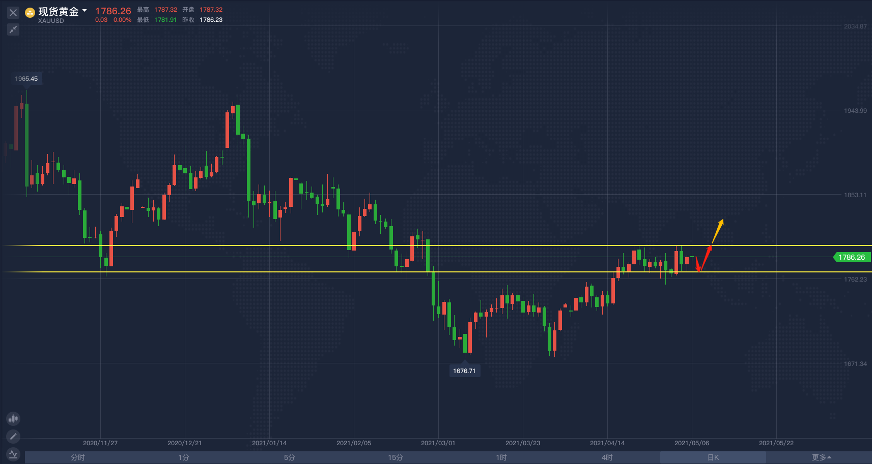 昨日黄金高点1788,低点1770,整体走势探底回升与我们昨日的分析思路一致,区间精准把握,高低点完美预测,操作策略再次止盈。今日盘面依旧看区间波动,我强调过在非农数据前黄金会继续保持区间运行,多空趋势难破位。大区间关注1798-1760,小区间关注1788-1770。